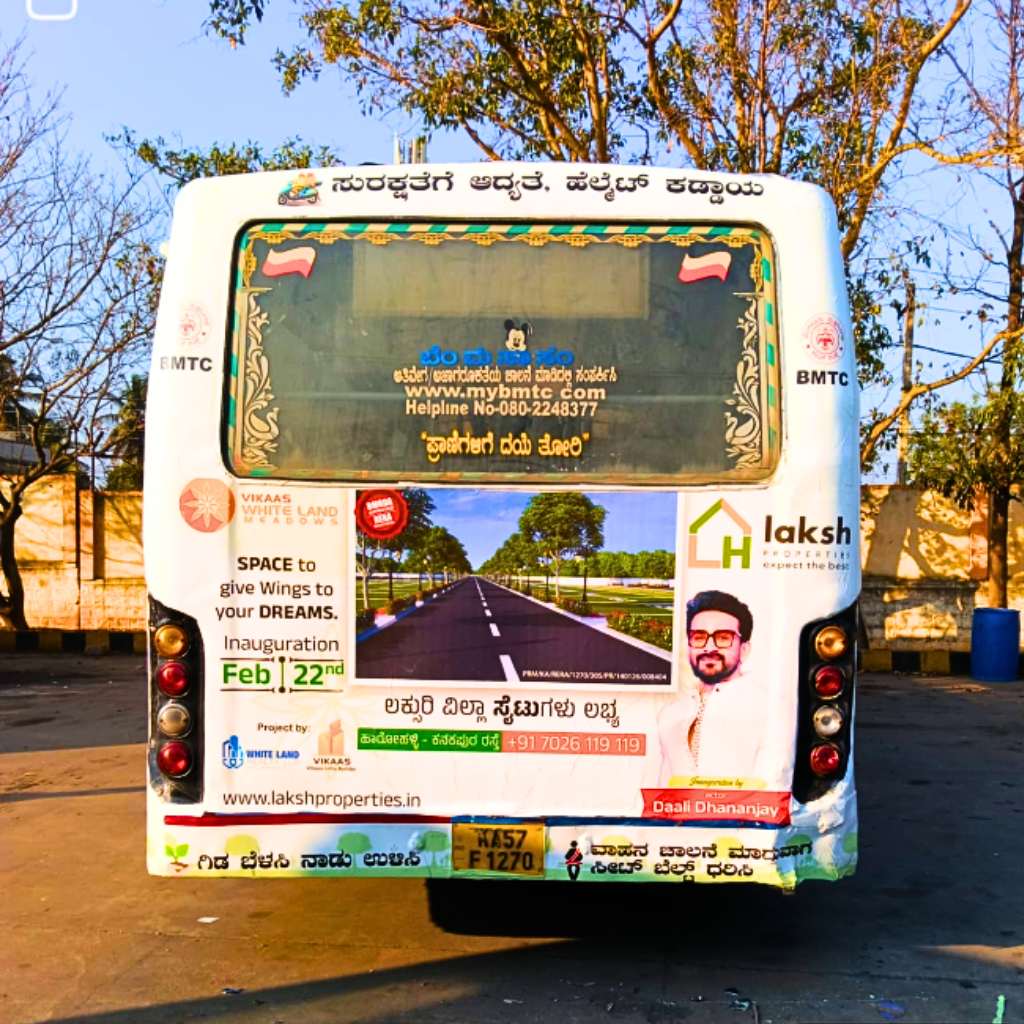 BMTC bus Advertisement refers to advertising placements on Bangalore Metropolitan Transport Corporation buses that travel city routes — putting your brand in front of daily commuters and city traffic.